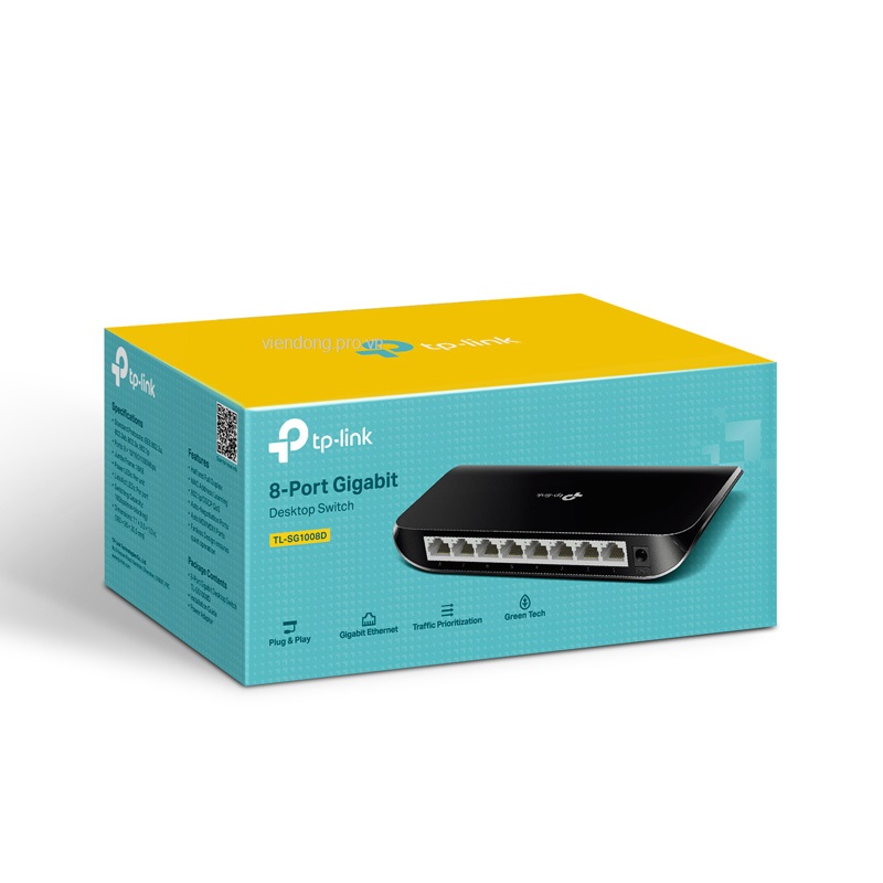 Switch tp-link 8-port 1gb gồm 8 cổng RJ45 10/100/1000Mbps – Công nghệ xanh giúp tiết kiệm điện năng lên đến 60% – Hộp bằng nhựa, thiết kế để bàn – Chỉ cần cắm vào là xài, không cần phải tinh chỉnh cấu hình